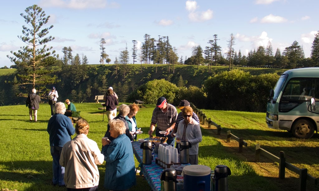 If you prefer not to rise early and bush walk, but would like to have breakfast on the clifftop, join the walkers at Captain Cook Monument and share in the delicious barbecue breakfast.